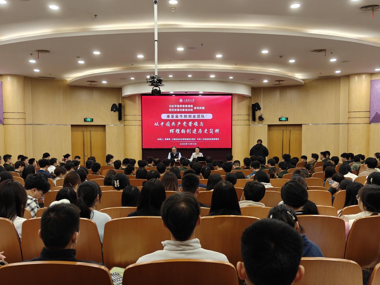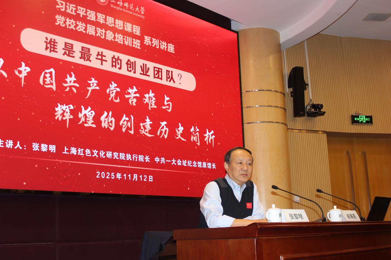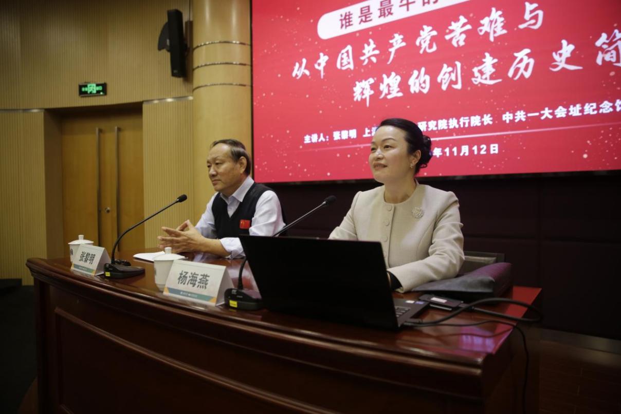 11月12日,在我校奉贤图书馆二楼报告厅内,一场跨越时空的精神对话激荡人心。为深化“习近平强军思想的学习与应用”学院特色课程建设,更好地学习领会习近平强军思想内涵,加强国防教育、巩固国家安全、支持强军实践,上海退役军人学院特地邀请了上海红色文化研究院执行院长、中共一大会址纪念馆原馆长张黎明作题为“谁是最牛的创业团队?——从中国共产党苦难与辉煌的创建历史简析”的专题讲座。由校党委副书记杨海燕主持,上海退役军人学院师生及校党校党员发展培训班学员等共220余人参与活动。现场听众在沉浸式党史学习教育中,在历史叙事与现实使的交织中,感受信仰的磅礴力量。